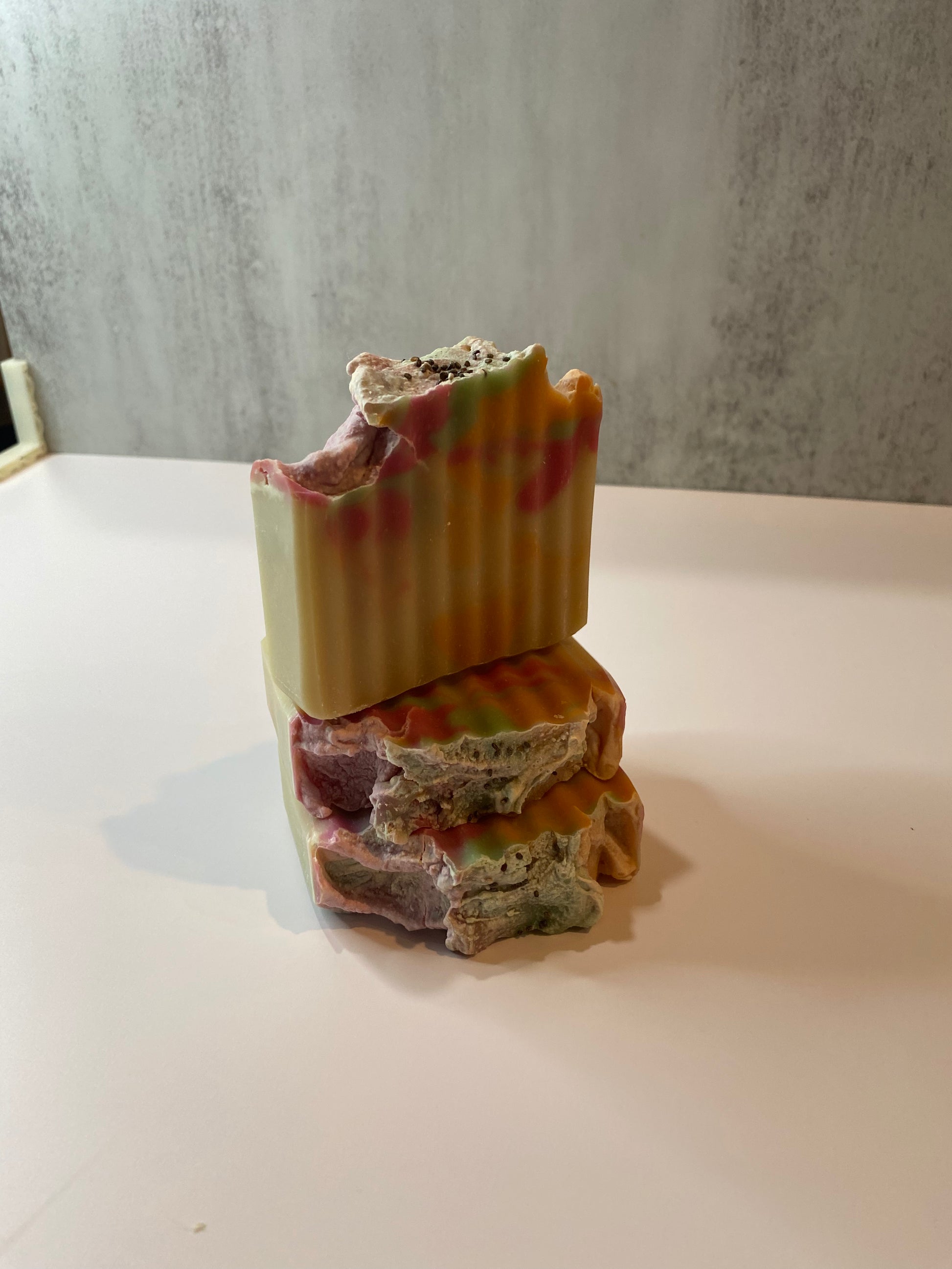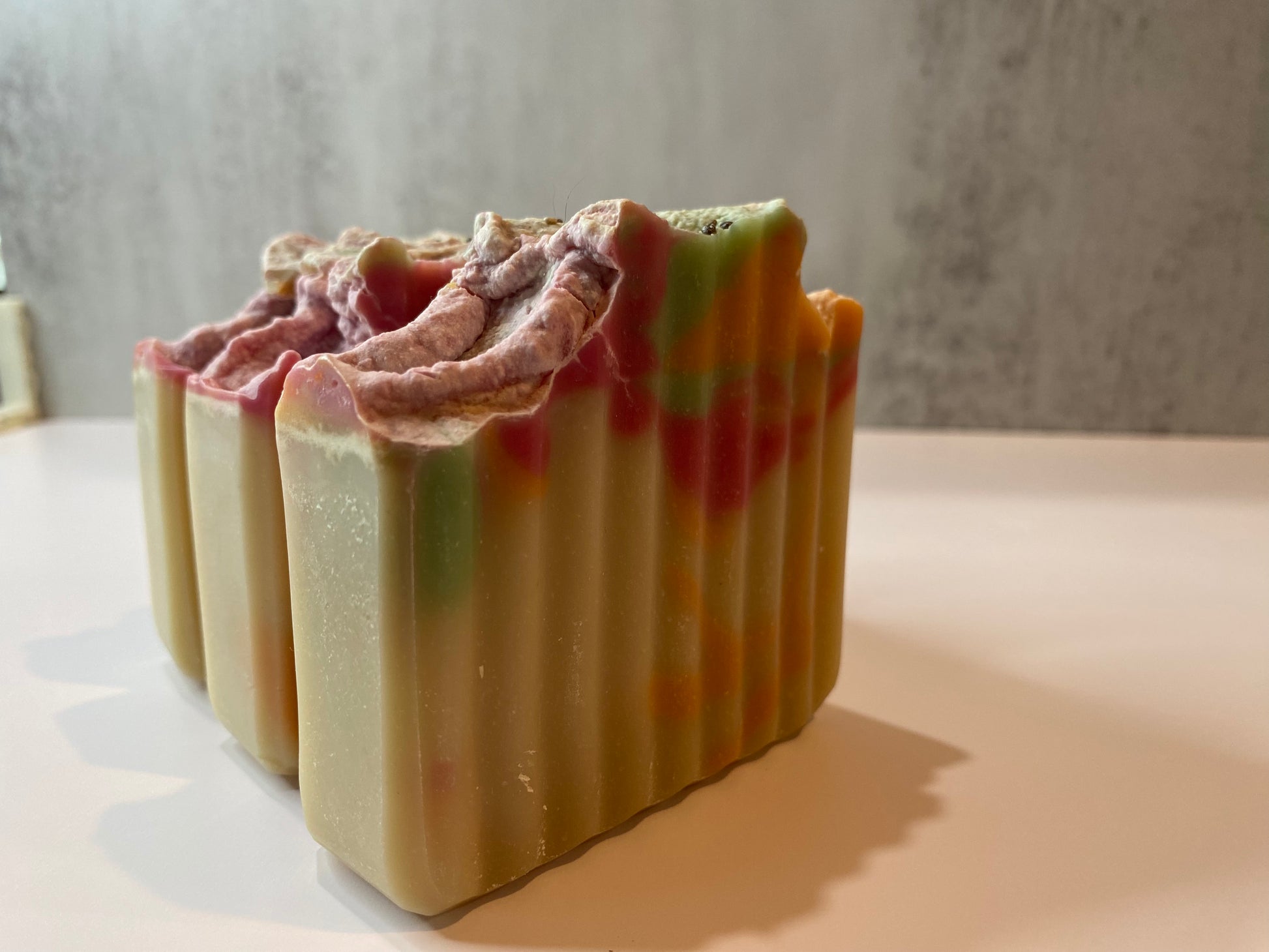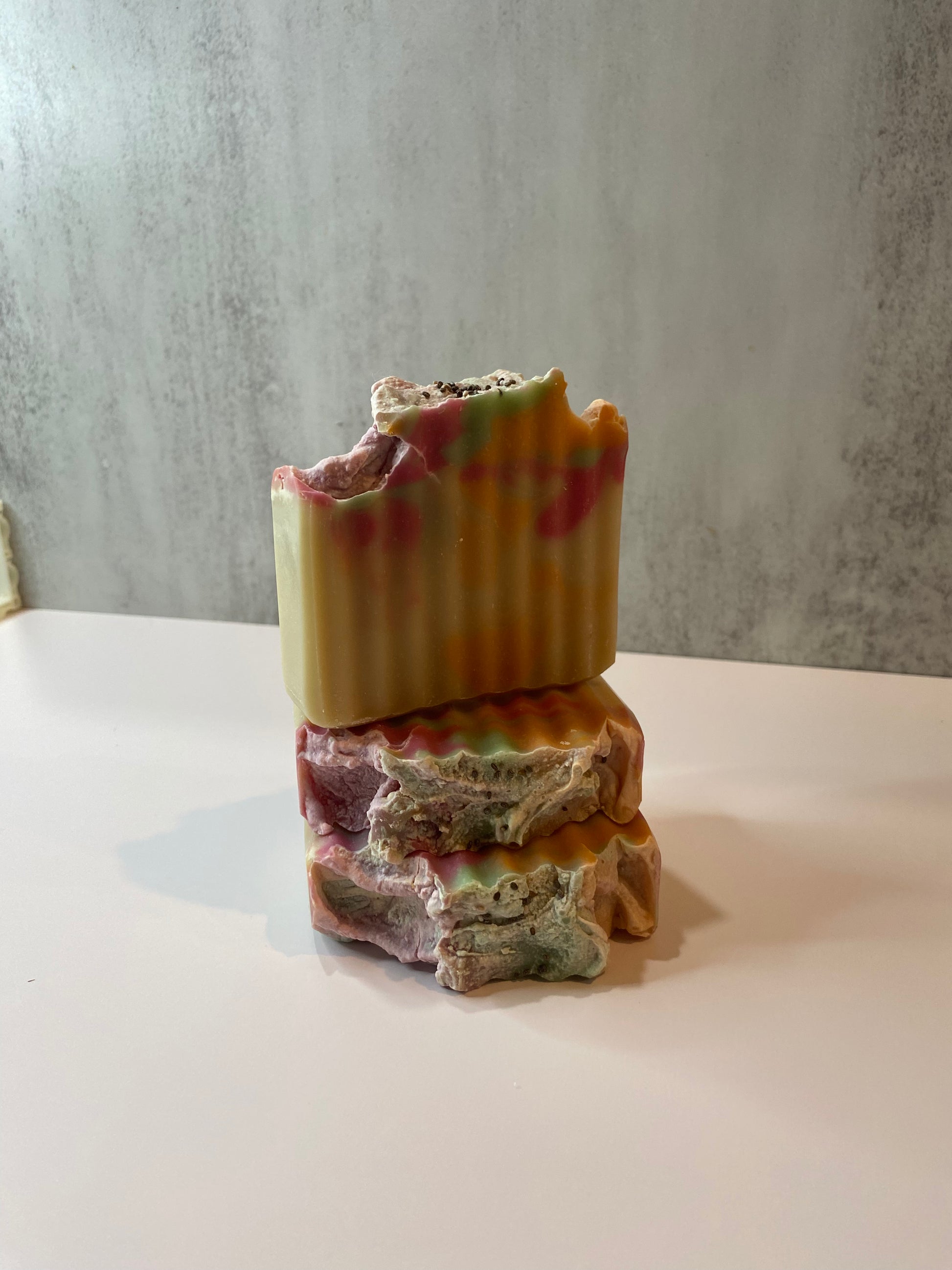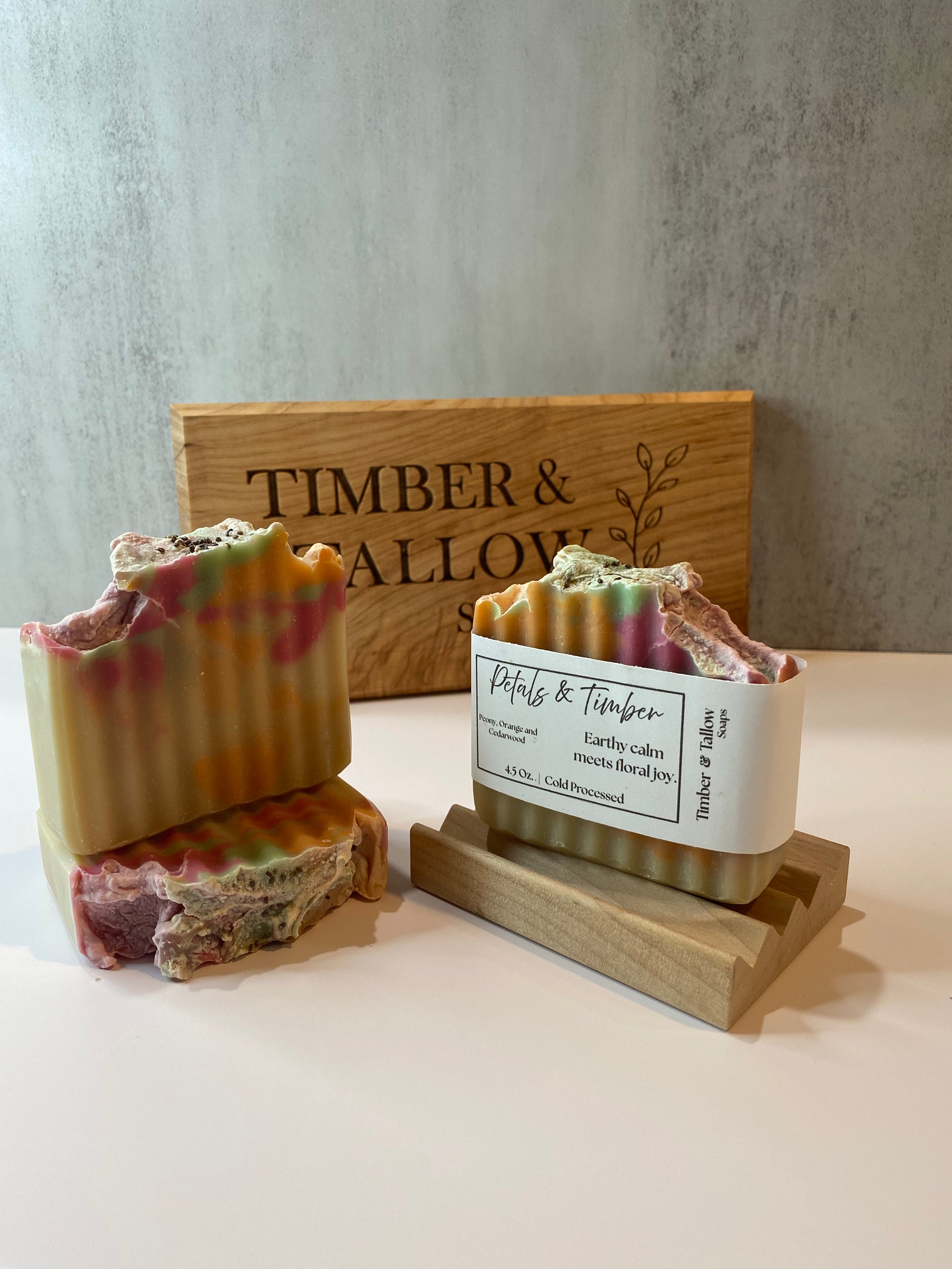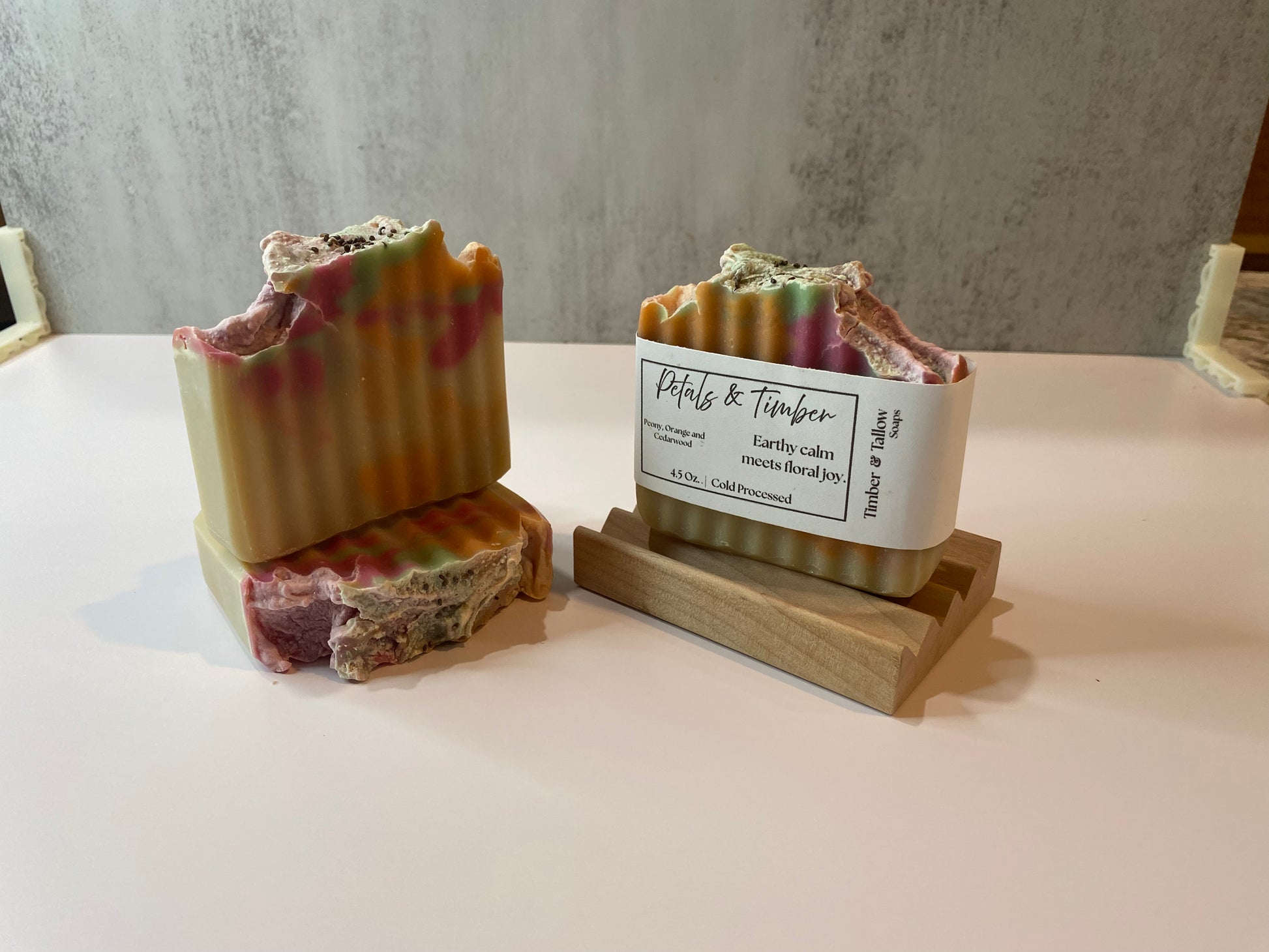 Petals & Timber -Handcrafted with botanical precision, this artisanal soap combines vibrant peony petals with warm orange and cedarwood notes. The floral elegance of peony pairs beautifully with citrus brightness and grounding cedarwood, creating a sophisticated sensory experience. Rich, nourishing lather cleanses gently while the natural fragrance profile offers a moment of daily luxury. Perfect for those who appreciate refined botanical craftsmanship and complex scent composition.